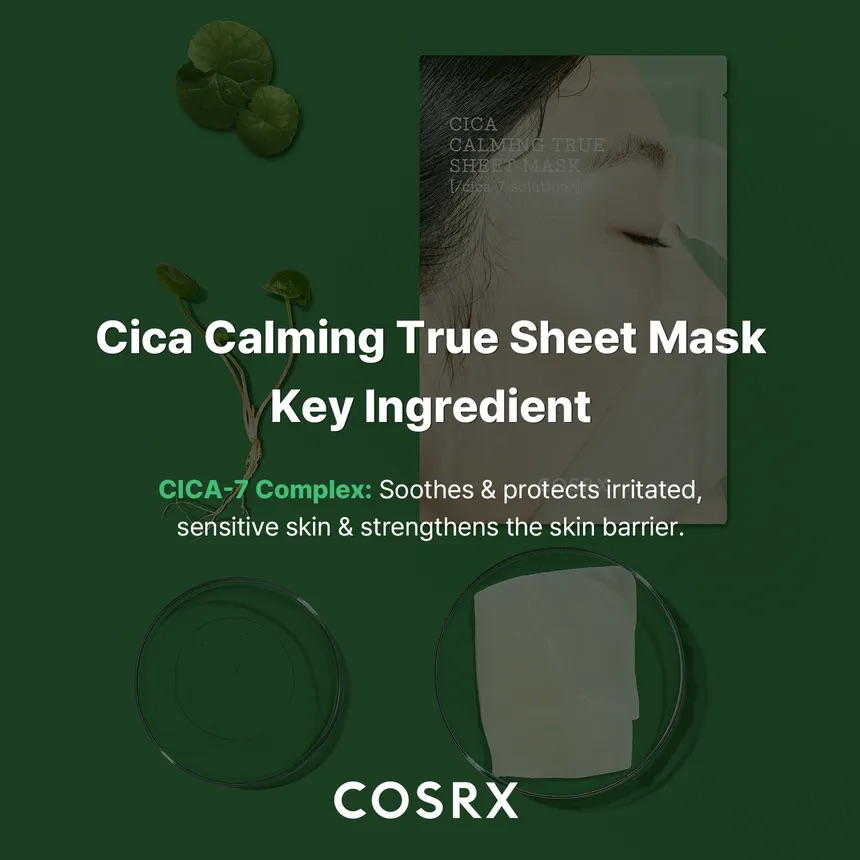 - COSRX's 7-CICA COMPLEX: Formulated with 7 Centella ingredients to soothe and promote recovery.