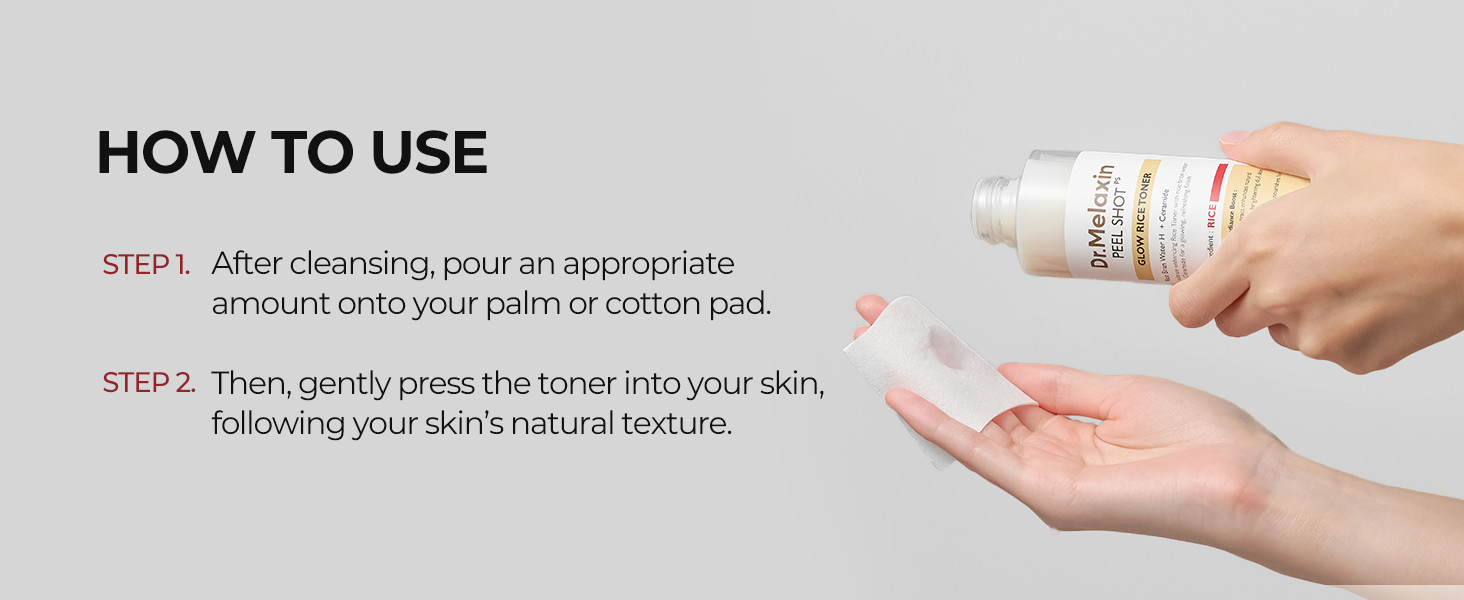 After facial cleansing, dispense a proper amount on palm or cotton pads.