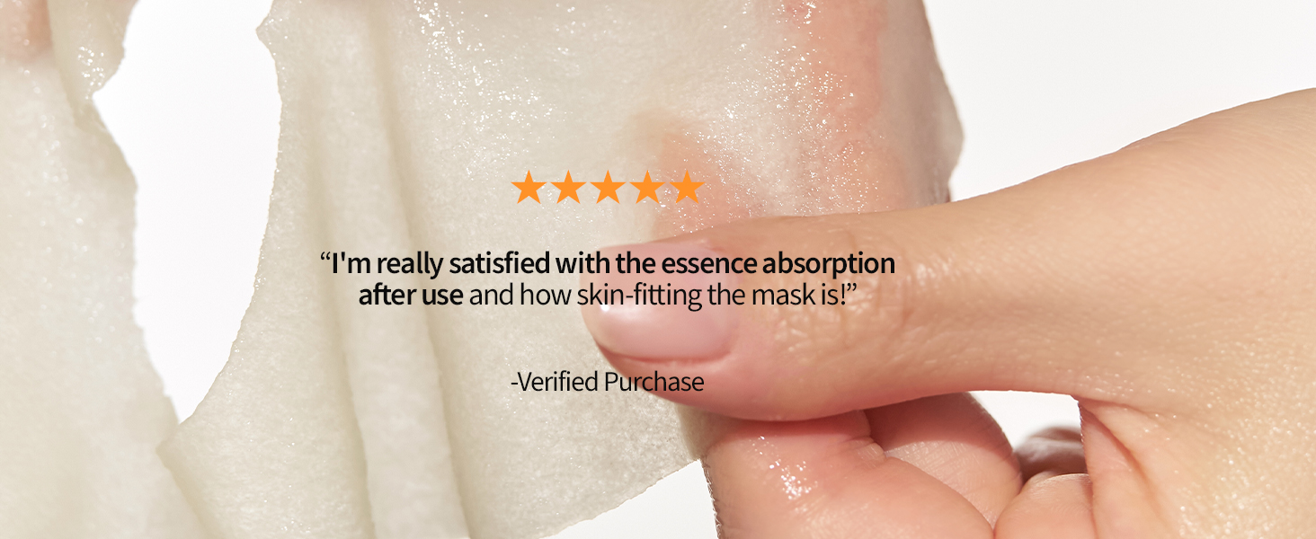 - [Hyper-Shrink Technology Fabric for a Customized Fit] The sheet is made using a special shrink-processing method that creates a sponge-like fiber structure. Upon contact with the essence, the mask expands into a plump, gel-textured fabric that molds to your face for better absorption and comfort.
