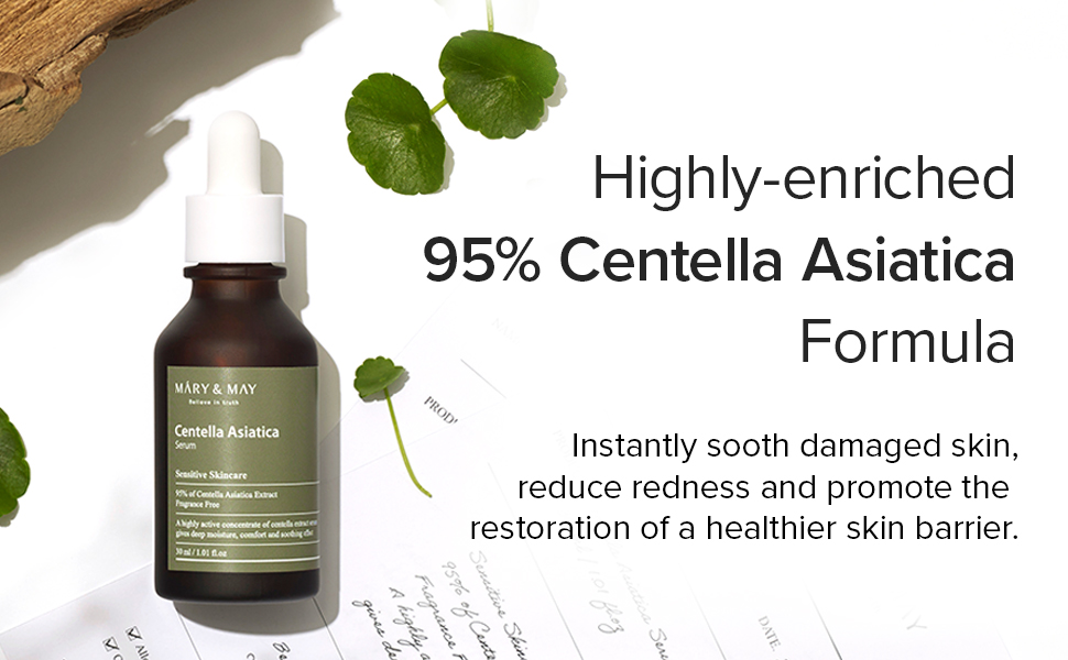 95% of Cica Extracxt for Instant Skin Soothing, Regeneration, and Elasticity Improvement