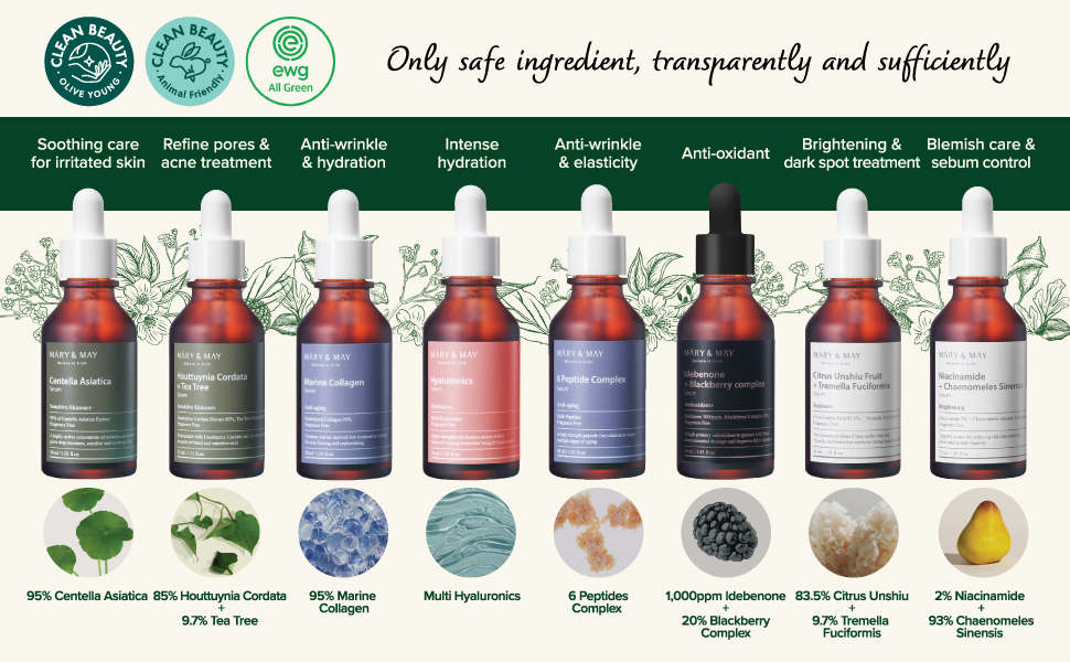 Marine collagen, which penetrates deep into the skin structure, restores natural elasticity. Its molecular structure allows the active ingredient to penetrate deeper than conventional animal-derived collagen. This unique property makes MARY&MAY Marine Collagen Serum a reliable choice for those seeking effective skin firmness care.