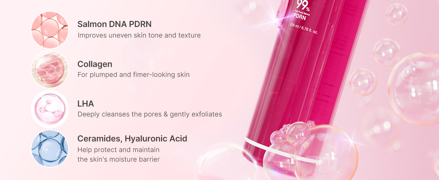 Powered by 99% Pure PDRN and Collagen to support a radiant, healthy-looking complexion. Enriched with Ceramides, Hyaluronic Acid, Glycerin, and Panthenol to help reinforce the skin’s moisture barrier. Formulated with a mild, low-pH formula tested for low irritation. Free from artificial colors and fragrances.