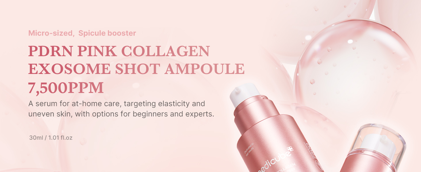 - Korean Glass Glow Skin: medicube PDRN Pink Collagen Exosome serum targets textured, rough skin, helps to resurface the skin, and boosts elasticity while enhancing the skin's glow and resilience.