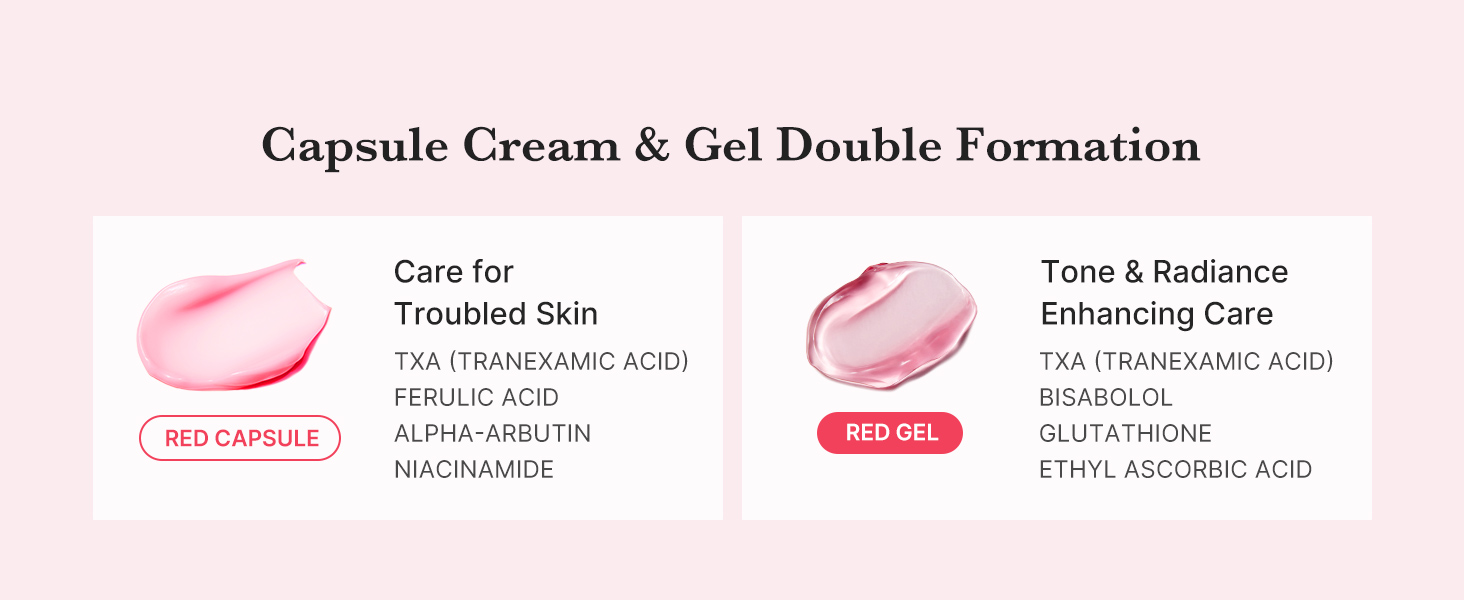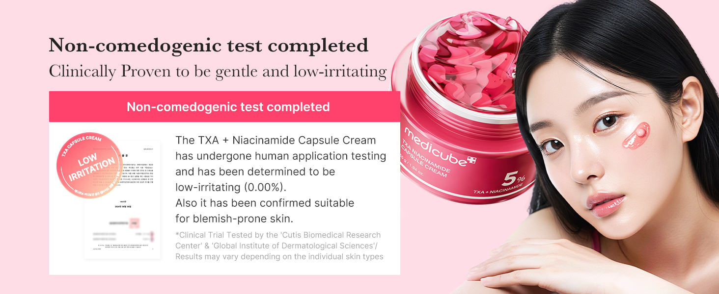 Pop! And Erase! Refines uneven tone and texture for visibly clearer, radiant skin Lightweight & Customizable Capsule Cream with TXA, A gentle yet effective ingredients for improving uneven skin tone with low irritation The TXA Niacinamide Capsule Cream has undergone human application testing and has been determined to be low-irritating (0.00%). Also it has been confirmed suitable for acne-prone skin and sensitive skin
