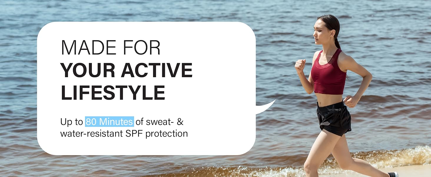 - [For Daily Use & Outdoor Activities] Our weightless sunscreen is sweat- & water-resistant for up to 80 minutes, offering effective defense against sun damage throughout the day and during outdoor activities—without the greasy feel.