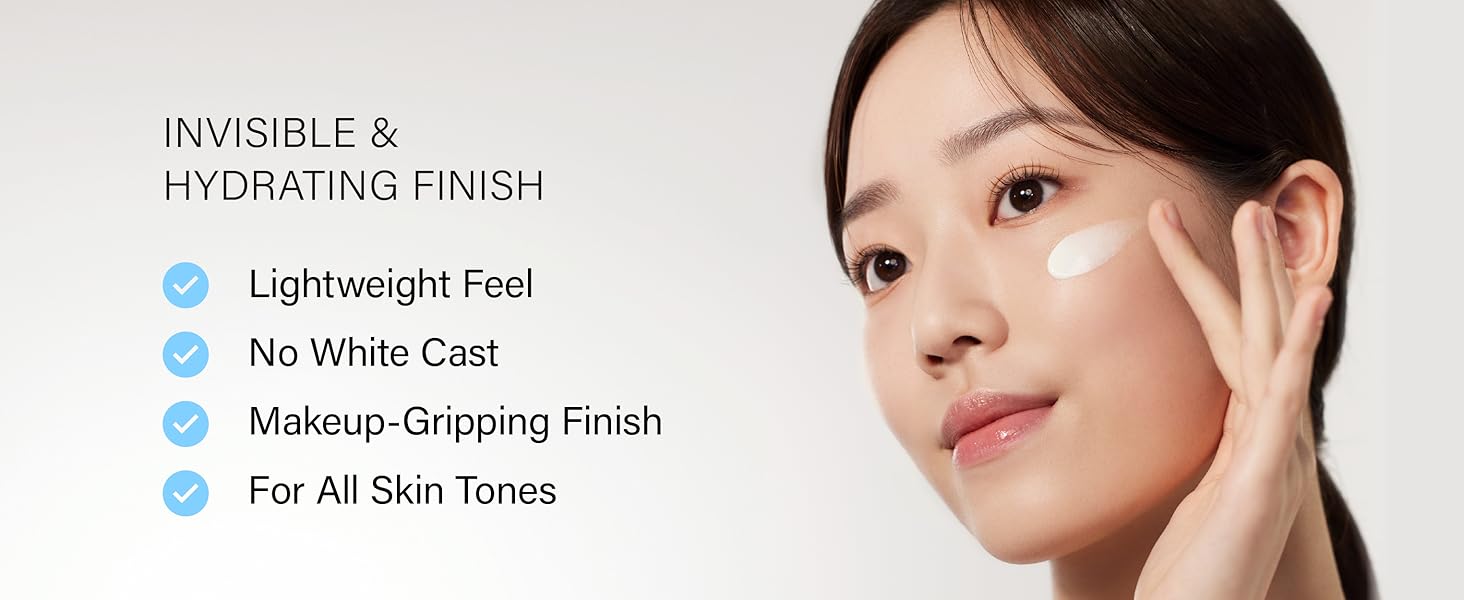 - [Rice Powered] Enriched with Korean rice and hyaluronic acid, our invisible sunscreen deeply hydrates your skin. Basil oil and turmeric extract help reduce skin irritation, while niacinamide (vitamin B) enhances skin luminosity. This skin-friendly formula is free from harmful chemicals.100% vegan and cruelty-free.