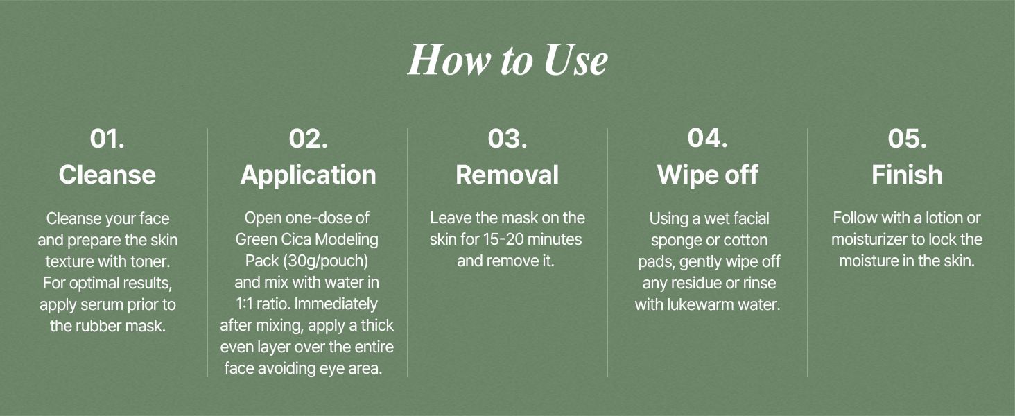 - How to Use: Mix with water in a bowl 1:1 and spread on clean skin. Leave it for 10~15 minutes and remove it with water or a cotton pad.