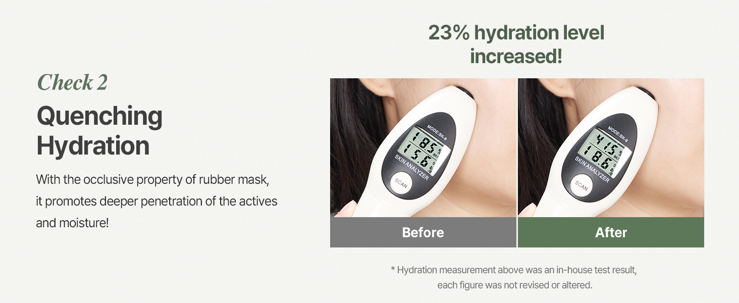 - Hydration-Packed Care - With its sealing properties that prevent the escape of effective ingredients and moisture, the modeling pack delivers deep into the skin without loss!