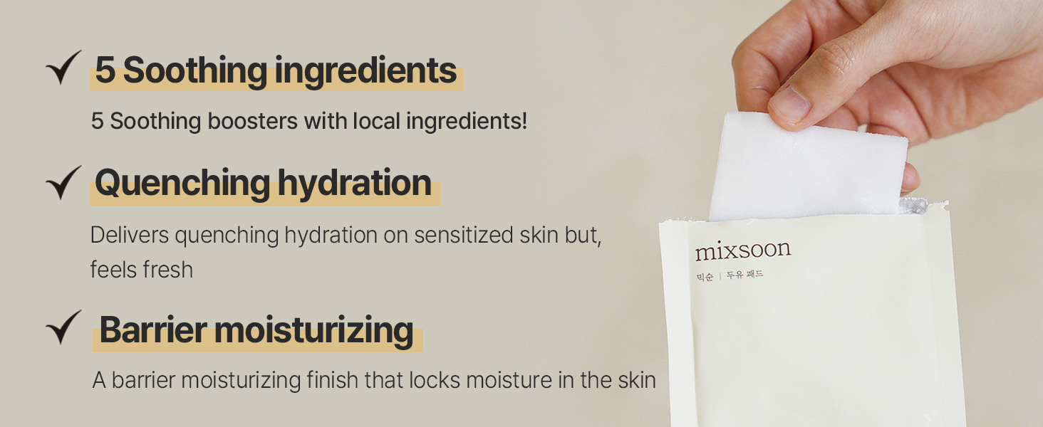 The Soybean Milk Pads from Mixsoon are toner pads that support healthy skin by soothing skin sensitivity and irritation. Each pouch includes 3 pre-soaked pads, making it perfect for quick, mess-free skincare.