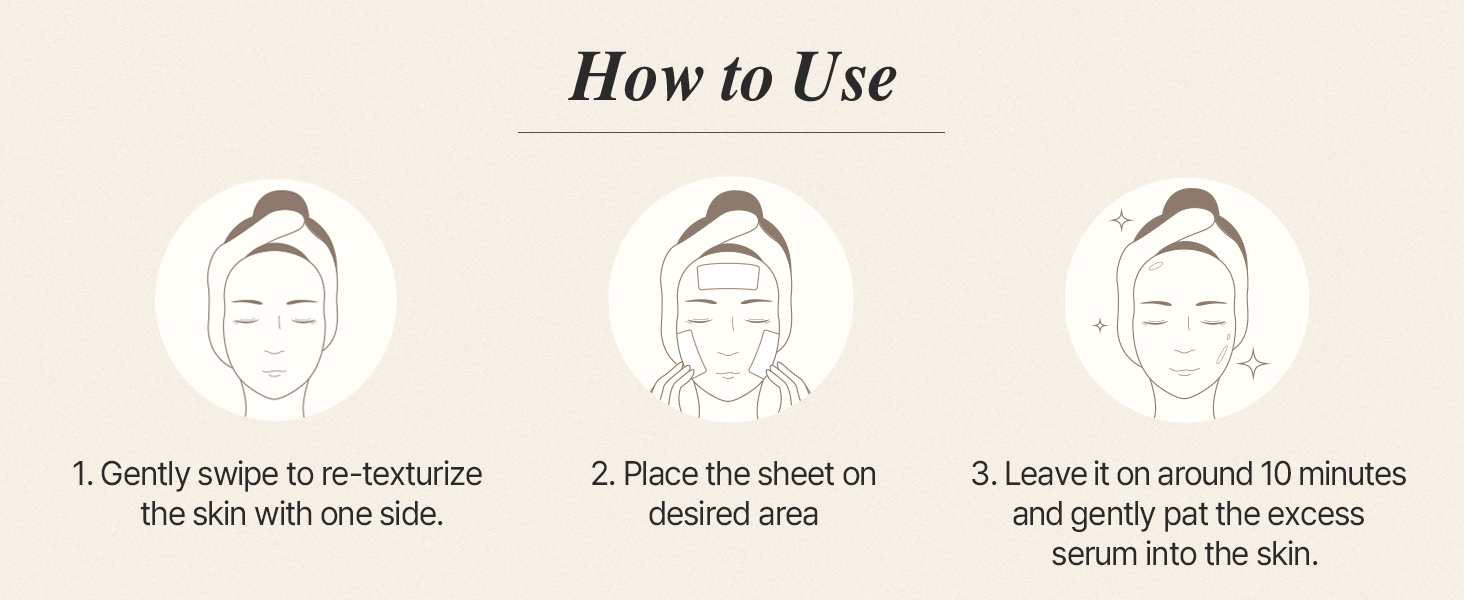 Gently wipe across the whole face with the product. Apply the pads on face and wait for 10 minutes as mask.