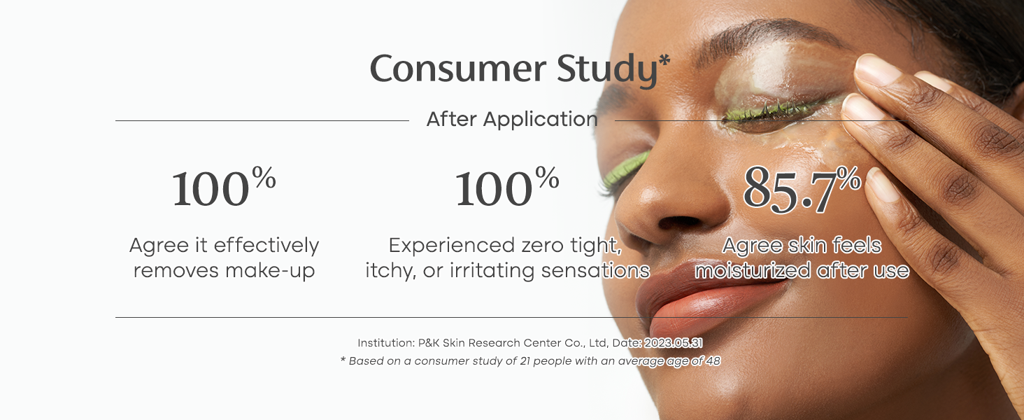 3. Add water to emulsify and melt away makeup. Rinse with warm water to finish.