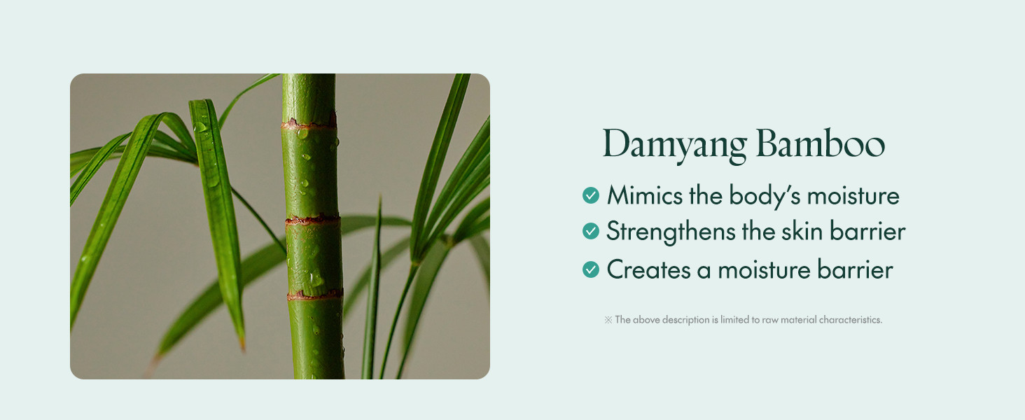 - [Bamboo Extract Resembling Body Moisture] - Korean Bamboo Extract, with a composition similar to that of the human body, penetrates deeply to enhance the skin's moisture barrier, promoting strong and resilient skin.