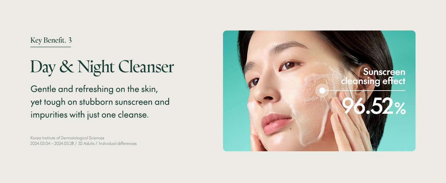 - [Day & Night Cleanser] - Equally gentle and strong, delivering a pleasant morning refresh and an effective nighttime cleanse that removes sunscreen and stubborn impurities.