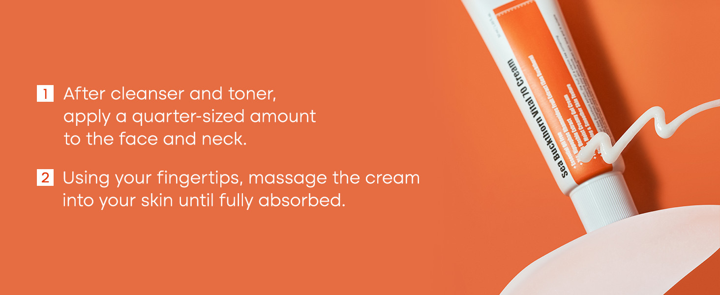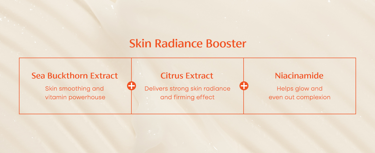 Cream enriched with vitamin C and antioxidants from Sea Buckthorn extract to energize the skin.