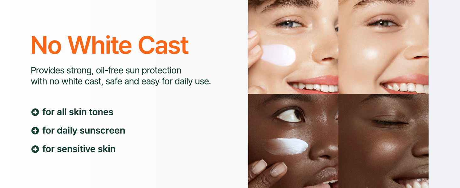 UVA & UVB Protection No White Cast Oil Free For All Skin Types Vegan Daily Skin Care