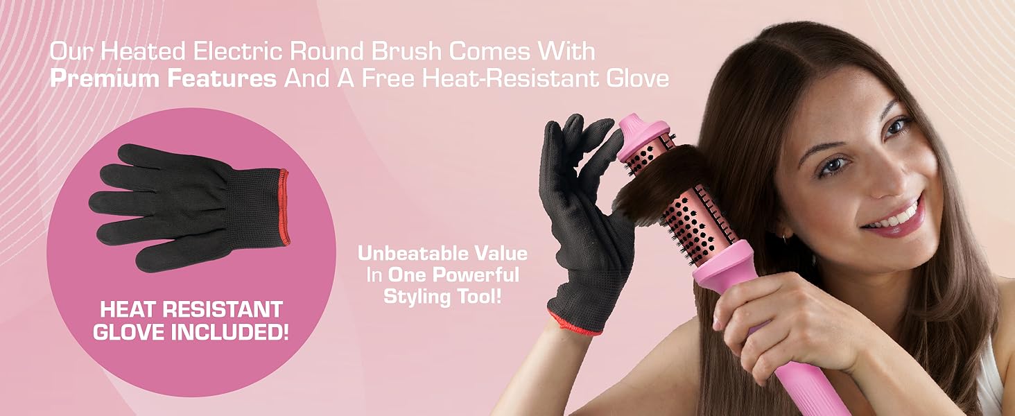 - SAFE STYLING: Anti-scald bristles and free heat glove protect hands and scalp during use for worry-free curls and volume