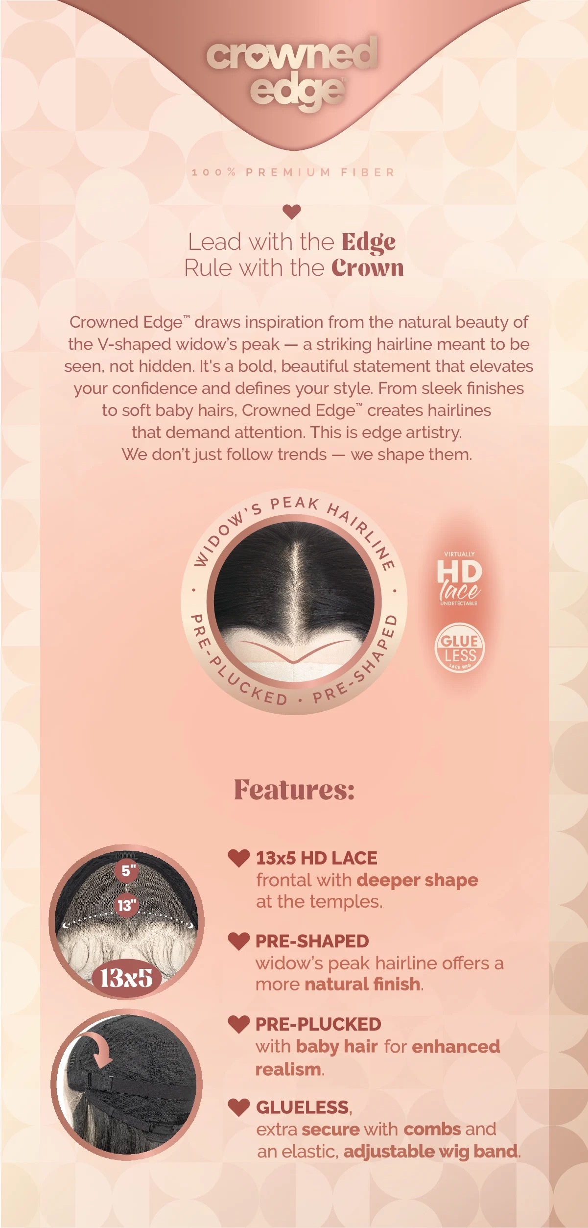 13×5 HD lace frontal with deeper shape at the temples.