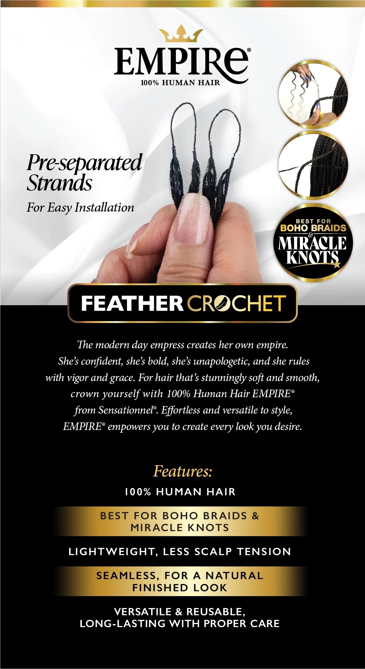 Best for boho braids and miracle knots.