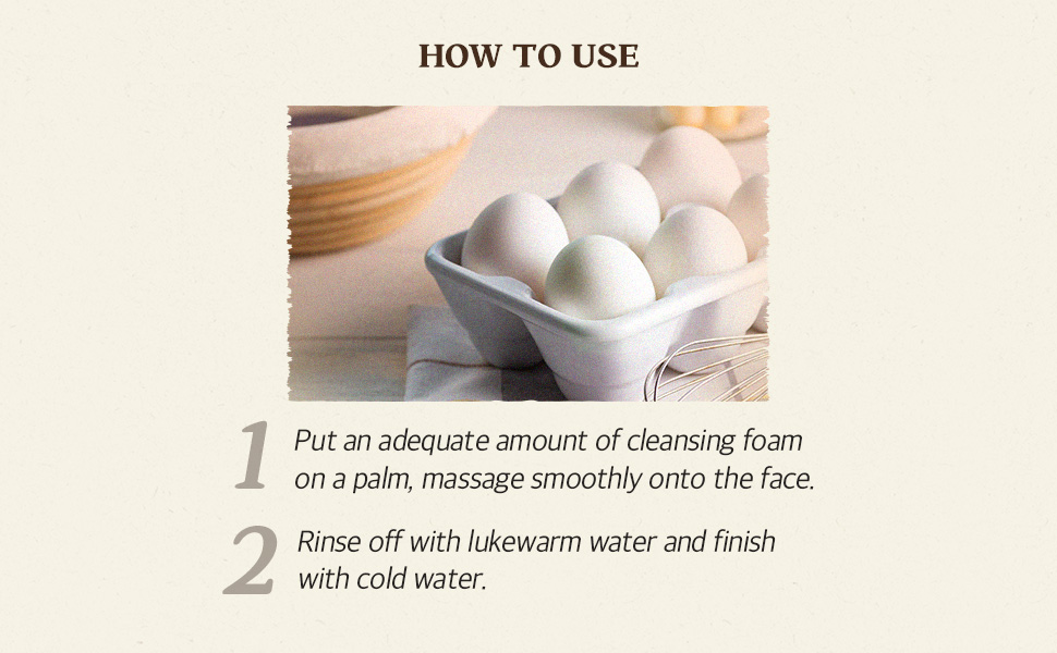 Put an adequate amount of cleaning foam on the palm, massage smoothly onto the face, and then rinse off with warm water.