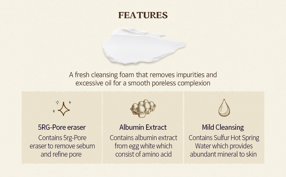 A fresh cleansing foam that removes impurities and excessive oils for a smooth poreless complexion. A pore-refining cleanser with albumen extract that thoroughly removes makeup while leaving a smooth, clear complexion.