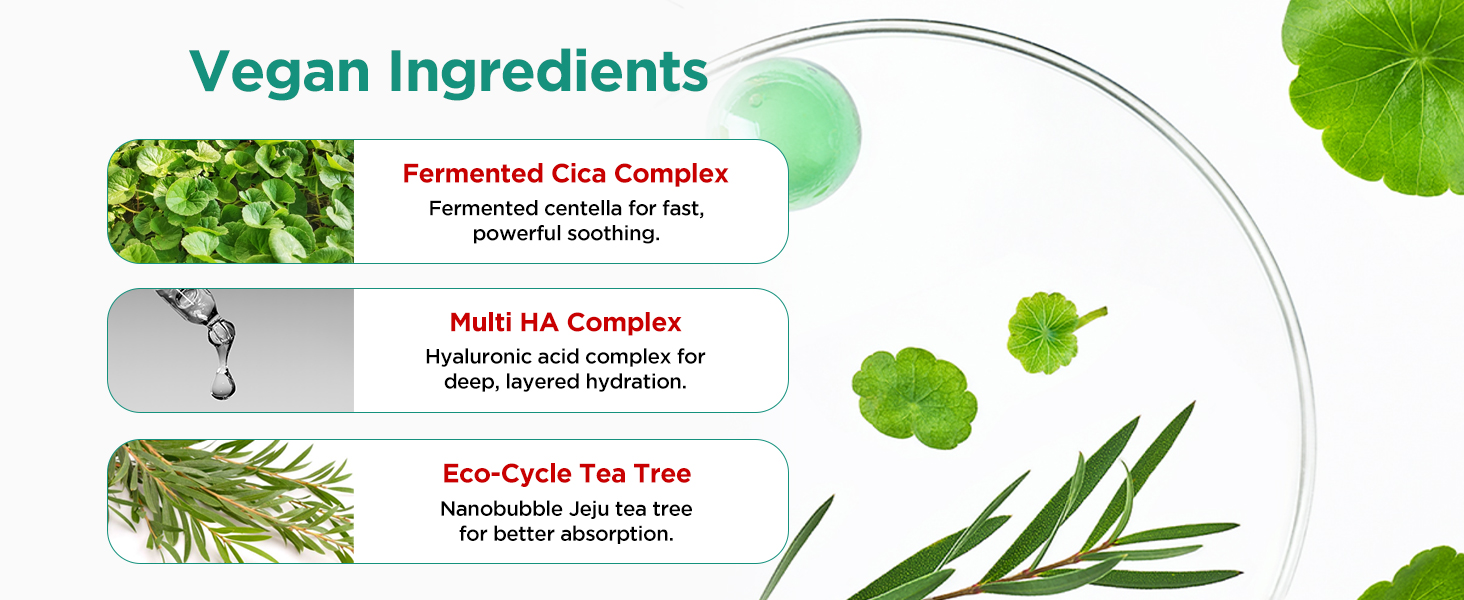 Soothe and cool sensitive skin in just 3 seconds with this refreshing gel cream. Powered by fermented cica, multi-hyaluronic acid, and eco-cycle tea tree, it provides instant relief while deeply hydrating and strengthening the skin barrier. The lightweight gel absorbs quickly, leaving your skin fresh, balanced, and smooth—never sticky.